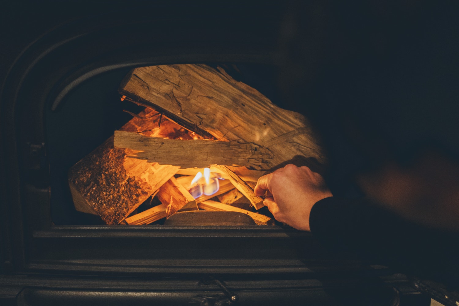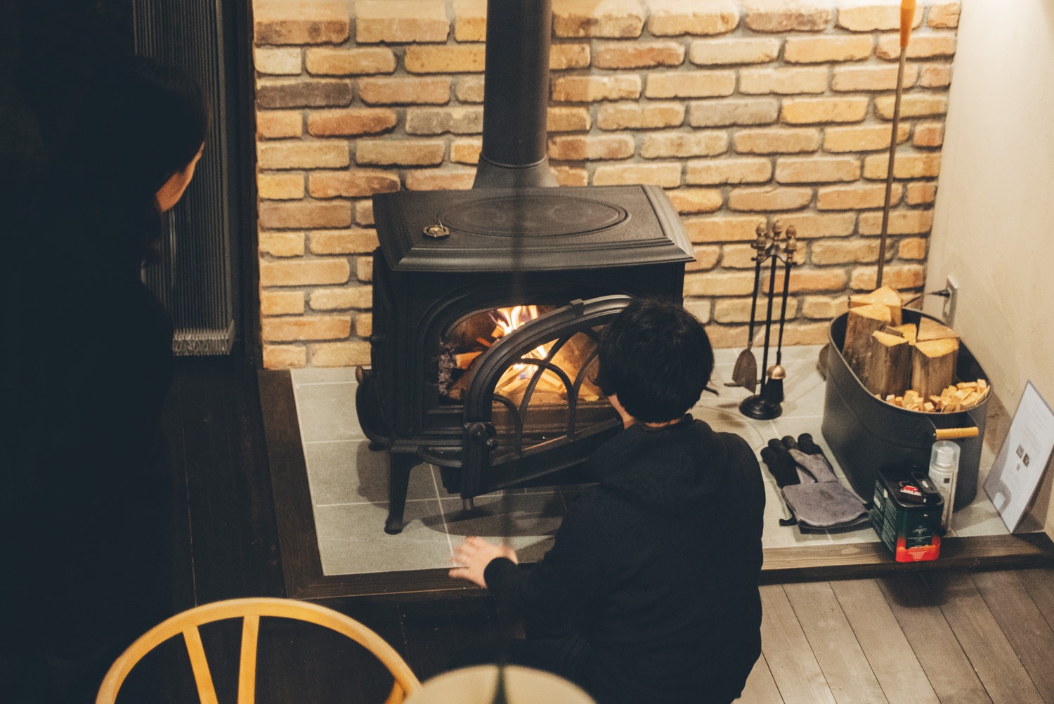 さらに薪ストーブまで付いていて、火を眺めているうちに、なんだか心が落ち着いてくる。